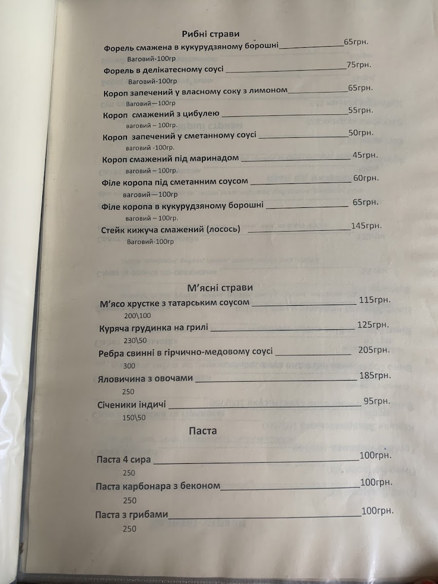 If you prefer mushrooms, the Белые Грибочки (White Mushrooms) will impress with their natural, earthy flavors. Additionally, the Форель В Кукурудзяному Борошні (Trout in Corn Flour) brings a unique texture and taste to the table, prepared in a way that enhances the freshness of the trout.